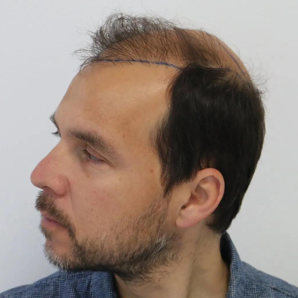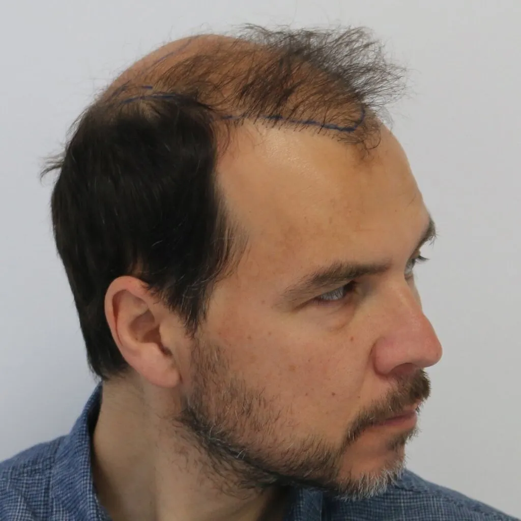 Initially, the doctor planned the hairline and the middle parts of the scalp according to the face structure. During the consultation, the doctor and the patient have planned the hairline together.